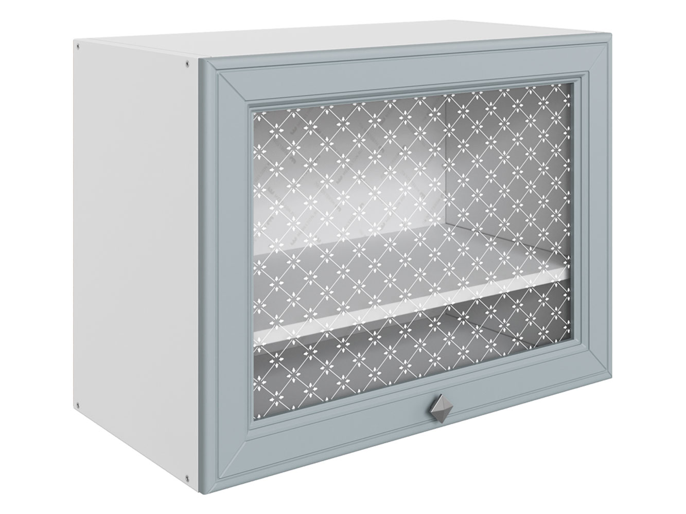 Навесной шкаф Мишель украсит интерьер и станет практичным дополнением кухонного гарнитура. Откидная дверца фиксируется в открытом состоянии, поэтому достать содержимое не составит труда. Прозрачное стекло украшено стильным узором.