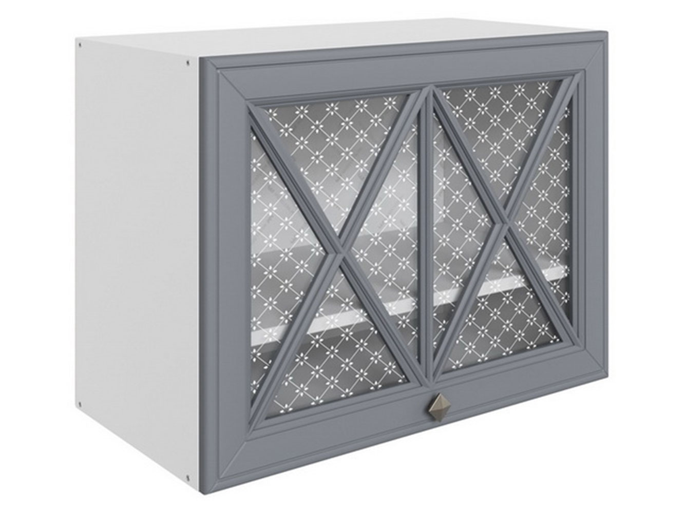 Навесной шкаф Мишель — вместительный и стильный модуль для хранения. Фасад украшен стеклом с узором и декоративными планками, поэтому смотрится очень привлекательно. Внутри можно красиво расставить посуду для сервировки и другую утварь.
