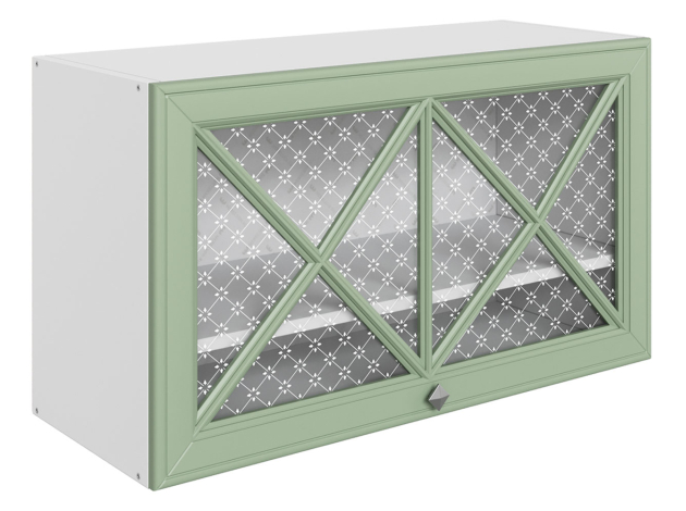 Навесной шкаф Мишель Белый / Эвкалипт / Стекло 80 см