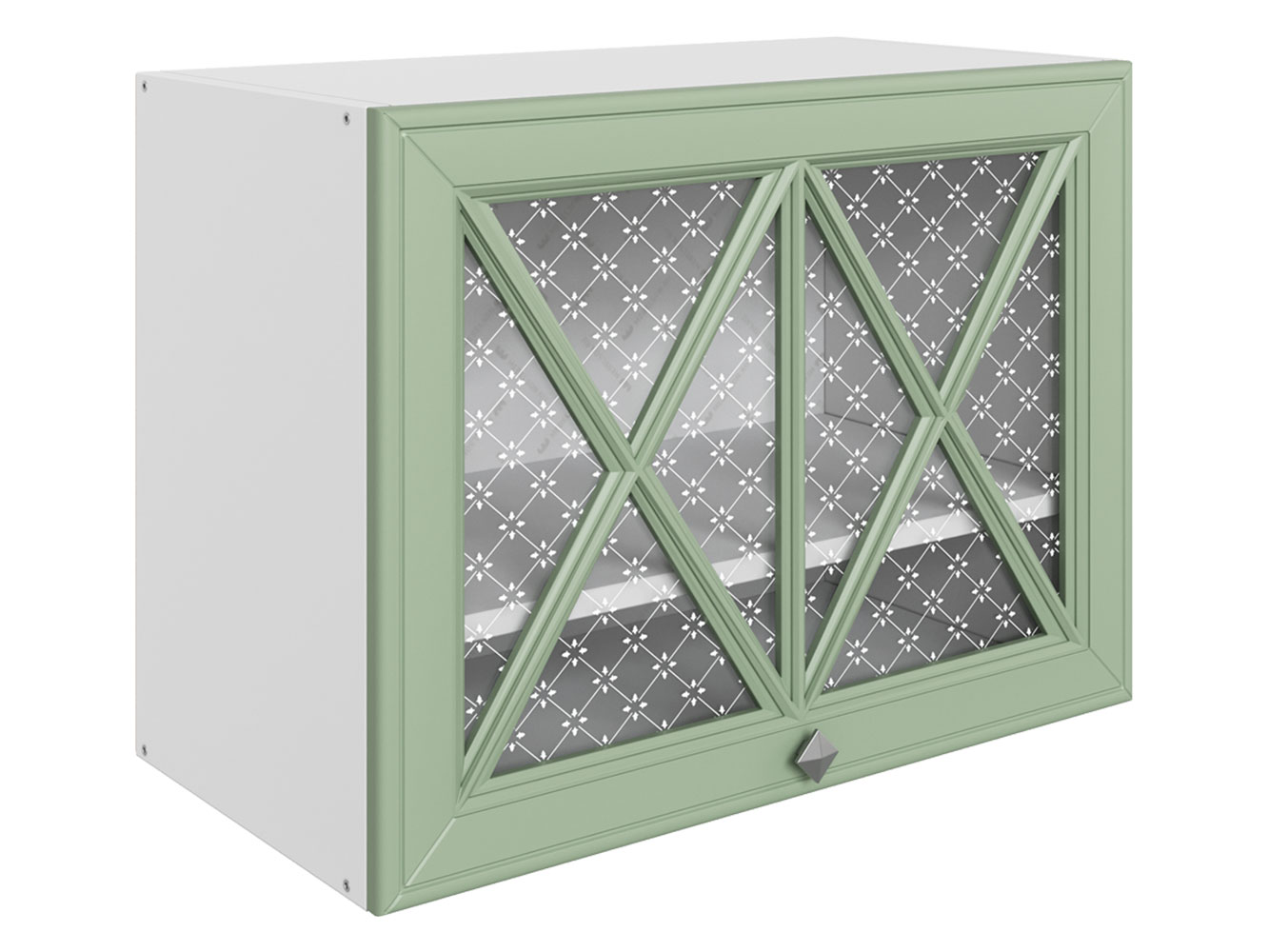 Навесной шкаф Мишель — вместительный и стильный модуль для хранения. Фасад украшен стеклом с узором и декоративными планками, поэтому смотрится очень привлекательно. Внутри можно красиво расставить посуду для сервировки и другую утварь.
