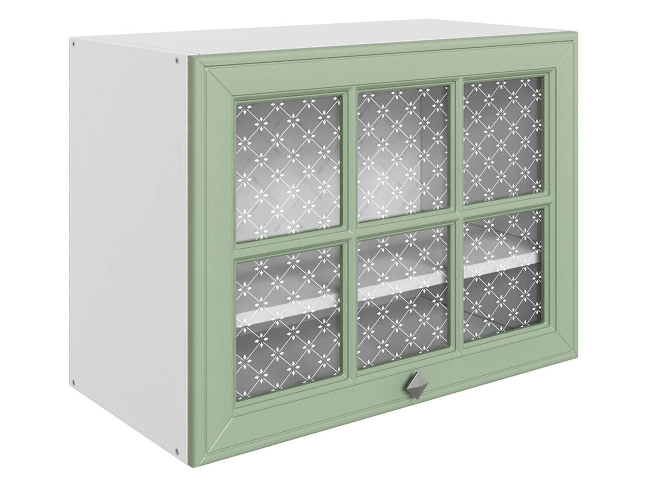 Навесной шкаф Мишель — отличный способ освежить внешний вид кухонного гарнитура. Благодаря прозрачному стеклу с очаровательным узором модуль смотрится легко и невесомо. Внутри можно красиво расставить посуду для сервировки, вазы и бокалы.