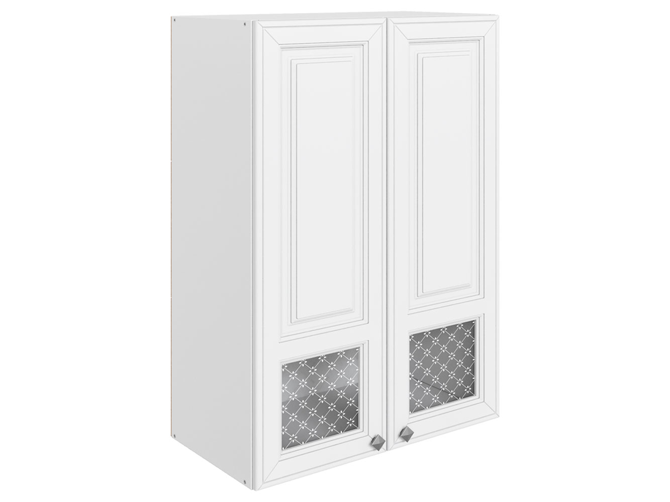 • Навесной шкаф Мишель — стильное дополнение кухонного гарнитура. Стеклянные вставки с очаровательным узором украшают элегантные рамочные фасады. За распашными дверцами находится отделение с полками, где удобно хранить посуду для сервировки, чай, кофе или специи.