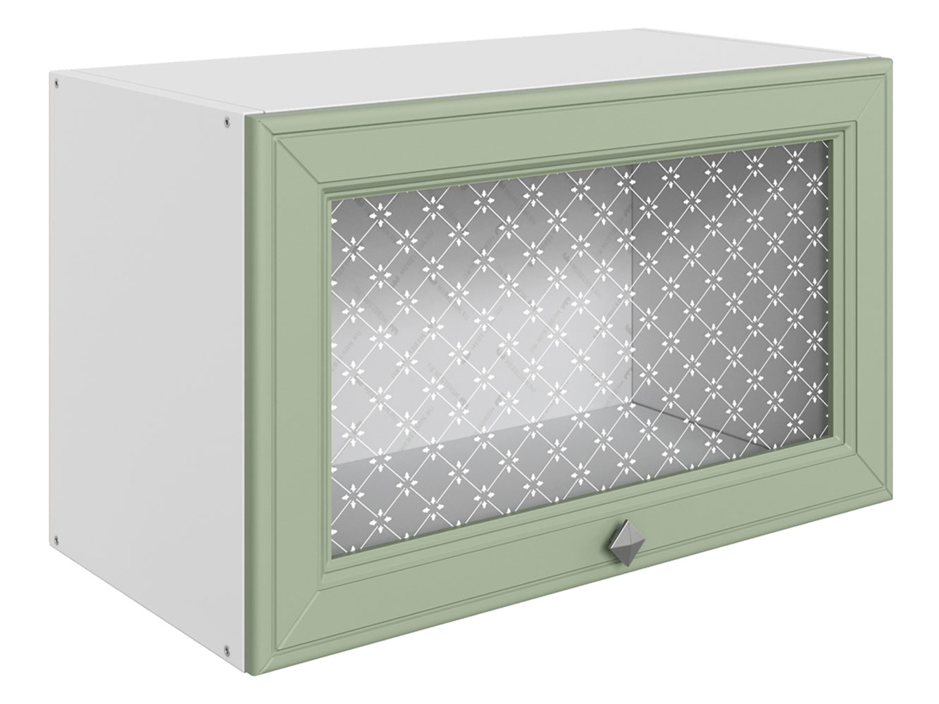 • Навесной шкаф Мишель украсит верхний ярус кухонного гарнитура. Прозрачное стекло с узором в элегантной рамке придает модулю особое очарование. Пользоваться шкафом очень удобно: дверца фиксируется в открытом положении, облегчая доступ к содержимому.