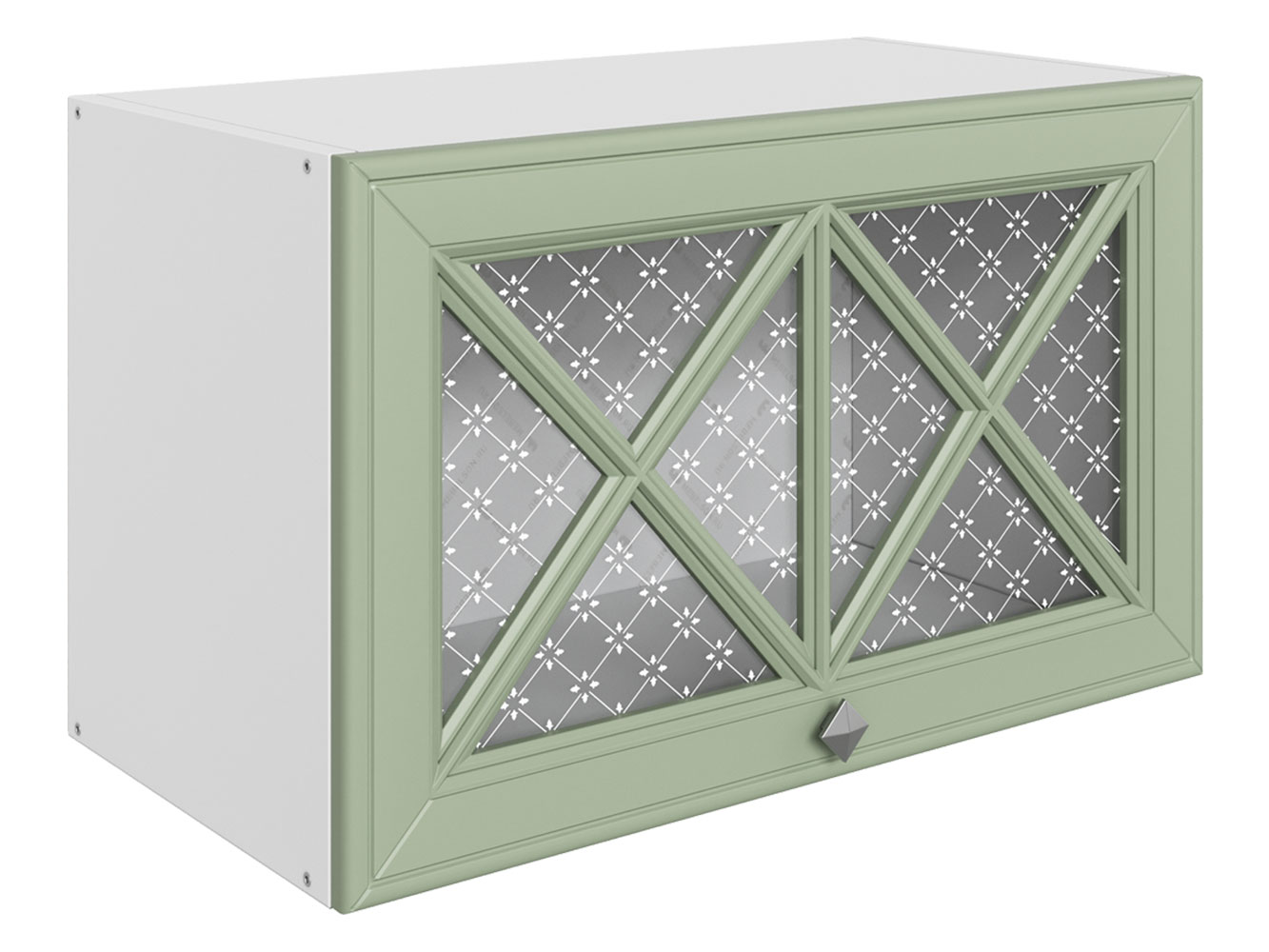 Навесной шкаф Мишель разнообразит внешний облик кухонного гарнитура. Прозрачное стекло с узором и фрезеровка на фасаде придают модулю особый шарм. Подъемный механизм надежно фиксирует дверцу в открытом положении, облегчая доступ к содержимому.