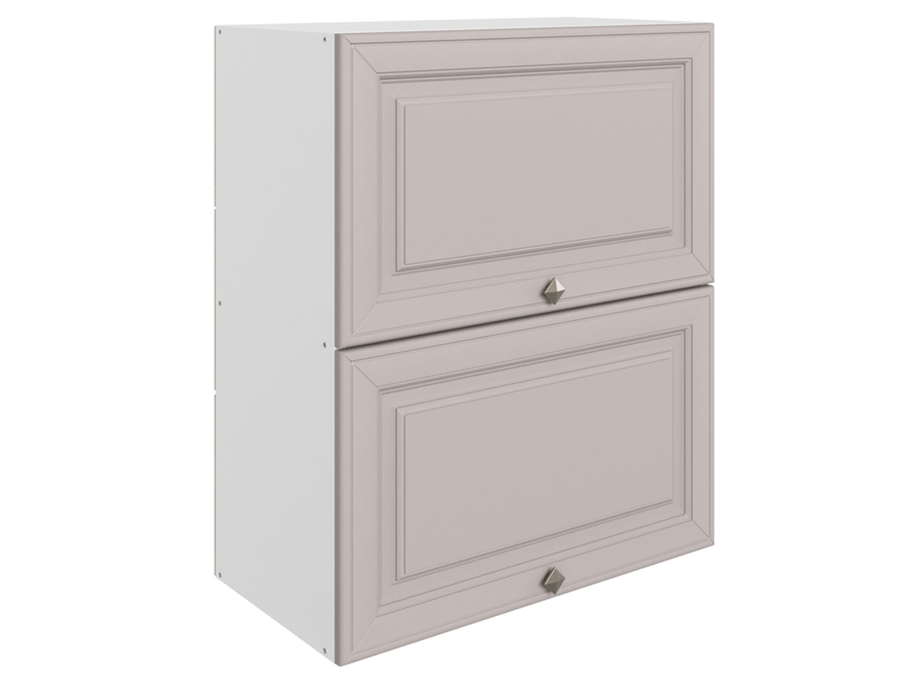 • Навесной шкаф Мишель — вместительное дополнение гарнитура, где удобно хранить различную кухонную утварь. Подъемный механизм надежно фиксирует дверцы в открытом положении для комфортного доступа к содержимому. Фрезеровка на фасадах придает модулю элегантный вид.
