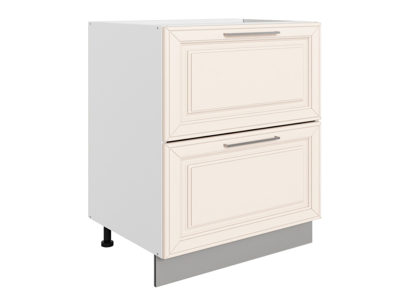 Стол 2 ящика Мишель Старт подойдет для аккуратного хранения кастрюль и сковород. Ящики плавно выдвигаются на всю глубину и бесшумно закрываются. Модуль можно дополнительно укомплектовать лотком для поварских приборов. Регулируемые опоры позволяют установить элемент гарнитура на поверхности с небольшими перепадами высоты.