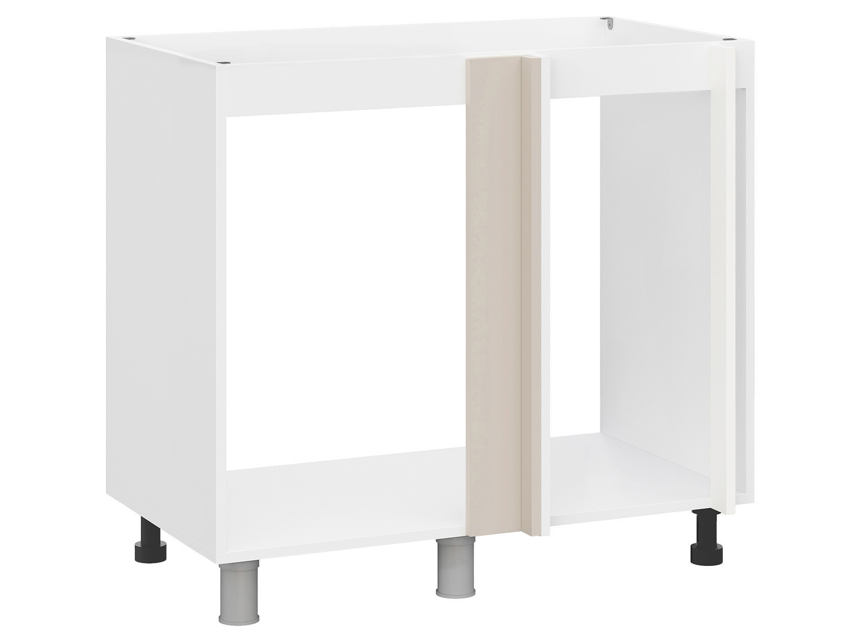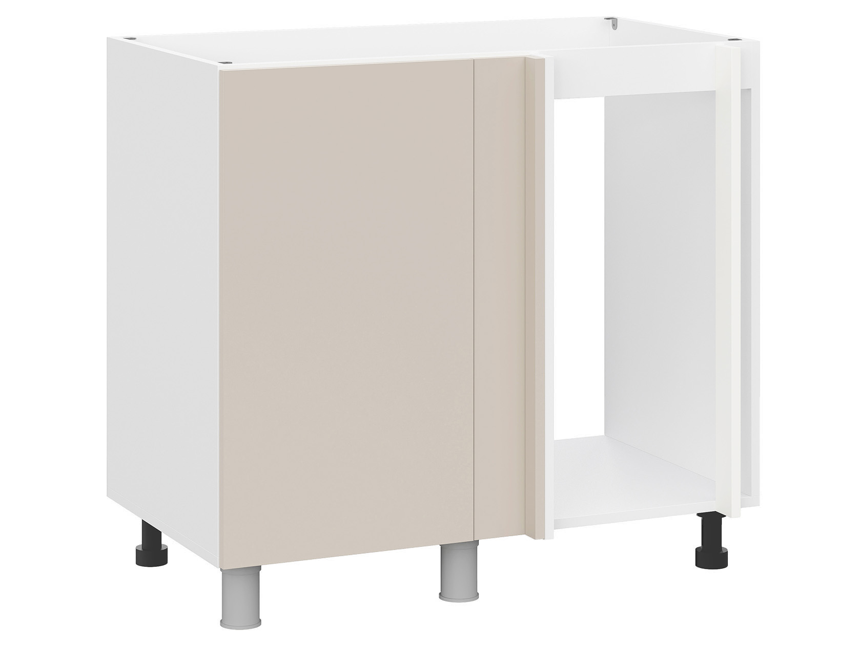 Угловой стол под мойку Модерн послужит дополнительной опорой для раковины, скроет коммуникации, а также расширит возможности для хранения. Конструкция без полок и задней стенки станет основной для формирования углового кухонного гарнитура.
