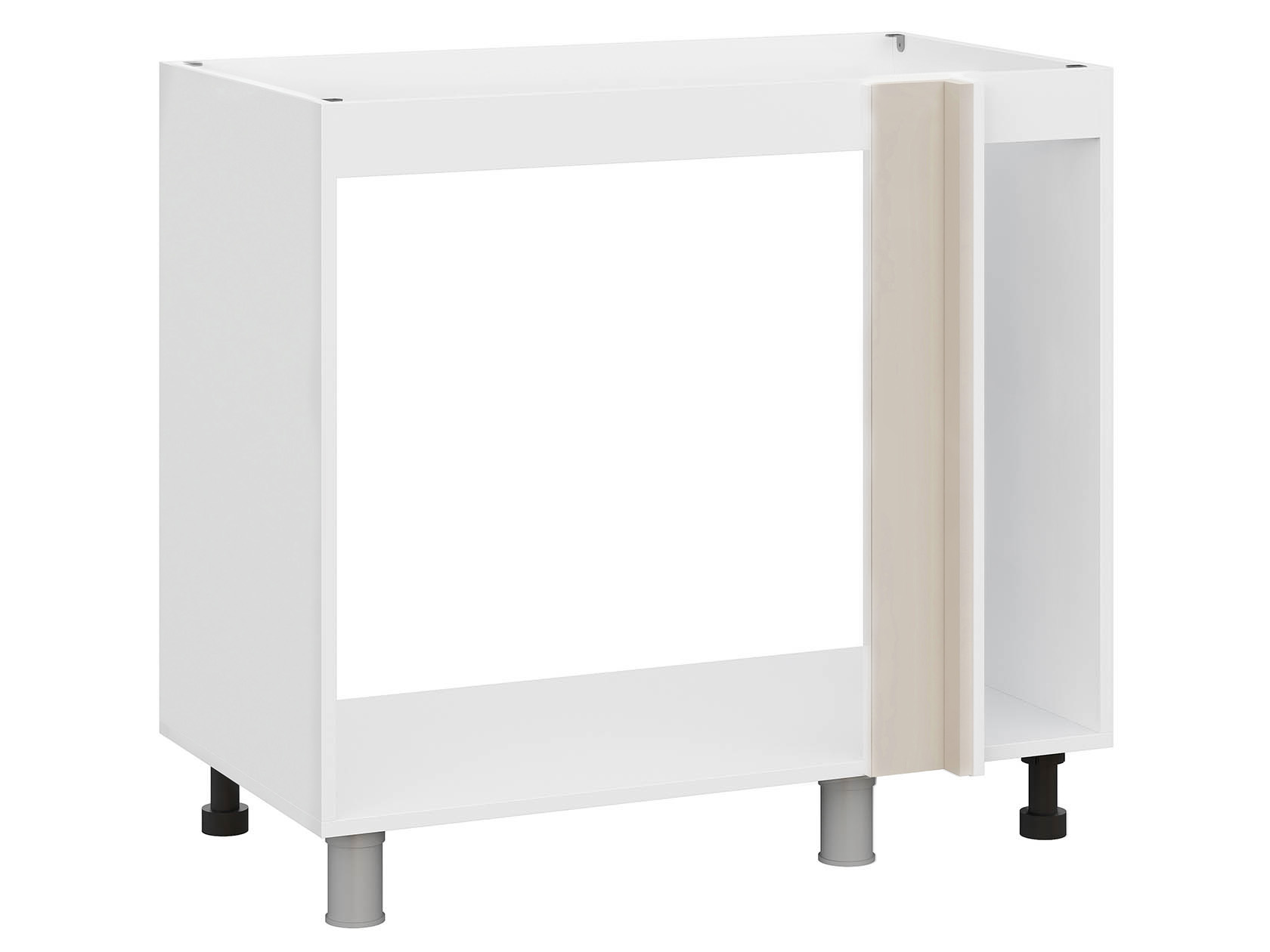 Угловой стол под мойку Модерн послужит дополнительной опорой для раковины, скроет коммуникации, а также расширит возможности для хранения. Конструкция без полок и задней стенки станет основной для формирования углового кухонного гарнитура.