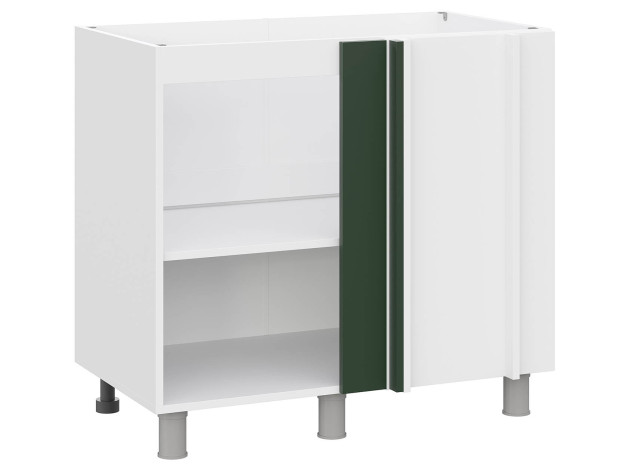 • Угловой стол Модерн — основа одноименного кухонного гарнитура. Конструкция без полок и задней стенки укомплектована распашной дверцей, которая закрывается плавно и без лишнего шума. Внутри достаточно места для хранения бытовой химии, аксессуаров для уборки и других нужных вещей.