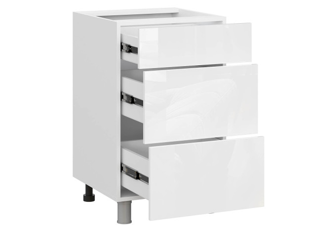 Стол Модерн оснащен тремя глубокими выдвижными ящиками для хранения столовых приборов, продуктов, и разной утвари. Такой модуль — незаменимый элемент любого кухонного гарнитура, в котором все расположено максимально удобно, и легко находится в нужный момент.