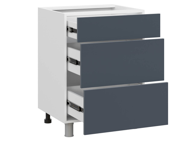 Стол Модерн оснащен тремя глубокими выдвижными ящиками для хранения столовых приборов, продуктов, и разной утвари. Такой модуль — незаменимый элемент любого кухонного гарнитура, в котором все расположено максимально удобно, и легко находится в нужный момент.