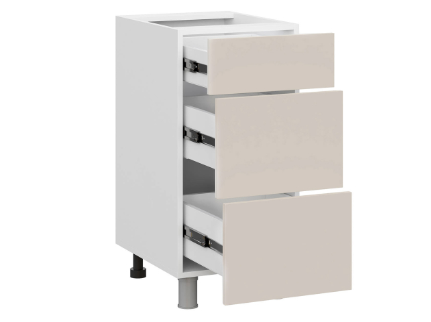 Стол Модерн оснащен тремя глубокими выдвижными ящиками для хранения столовых приборов, продуктов, и разной утвари. Такой модуль — незаменимый элемент любого кухонного гарнитура, в котором все расположено максимально удобно, и легко находится в нужный момент.