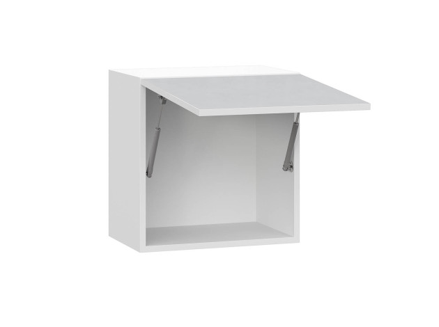 • Навесной шкаф антресольный Модерн — удобная и практичная модель. Откидная дверца оснащена газовыми амортизаторами, которые фиксируют поднятый фасад так, чтобы не приходилось удерживать его самостоятельно. Неглубокий модуль не перегружает интерьер.
