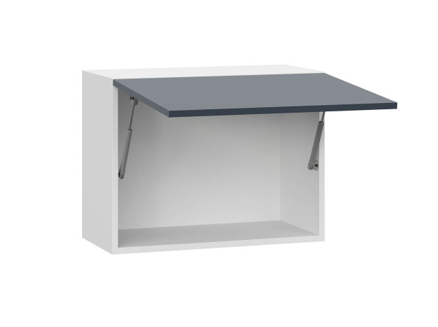 Навесной шкаф антресольный Модерн — удобная и практичная модель. Откидная дверца оснащена газовыми амортизаторами, которые фиксируют поднятый фасад так, чтобы не приходилось удерживать его самостоятельно. Неглубокий модуль не перегружает интерьер.