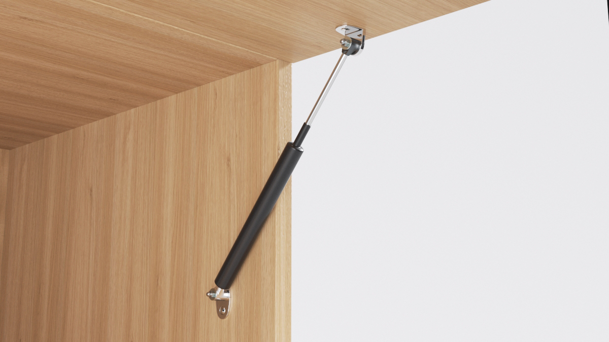 Механизм предназначен для бесшумного подъема и опускания дверцы шкафа, а также газлифт позволяет зафиксировать дверцу в открытом положении.