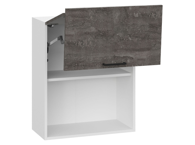 Барный шкаф Модус оснащен специальным механизмом, который фиксирует поднятые дверцы так, чтобы не приходилось удерживать их самостоятельно. Внутри удобно хранить хрупкую посуду, фужеры и бокалы. Фасады с древесной фактурой создают уютные акценты интерьера.