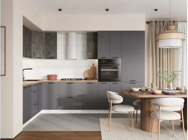 Высокий барный шкаф Модус — стильное и функциональное решение для хранения. Отделение с откидными фасадами и механизмом, который удерживает их в открытом положении, подходит для хрупкой посуды и другой кухонной утвари. Дверцы двигаются плавно и бесшумно, поэтому пользоваться модулем очень удобно.