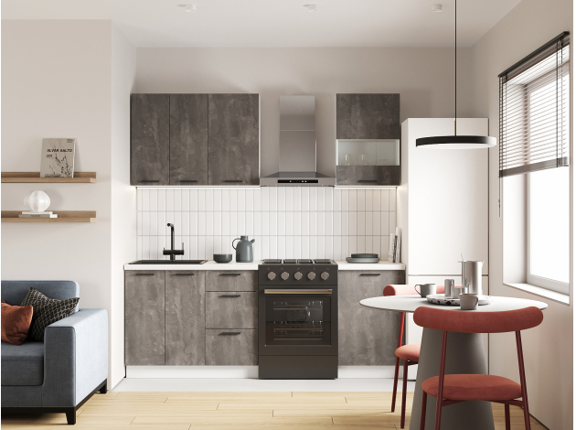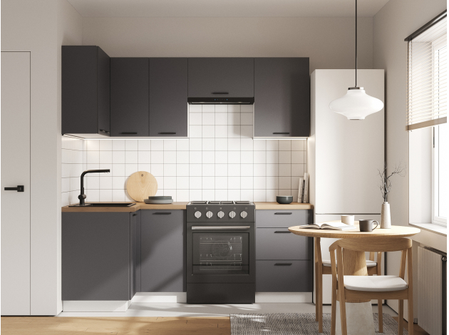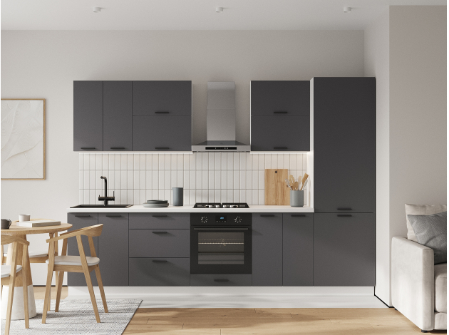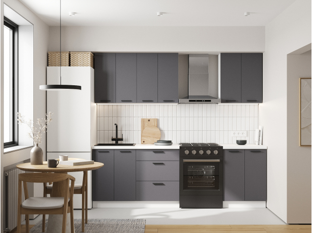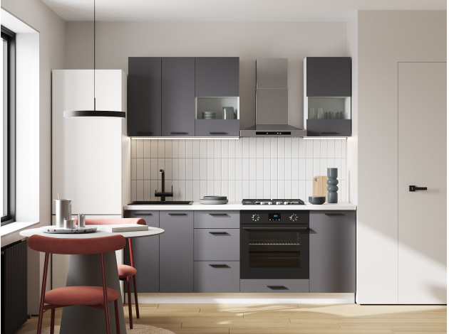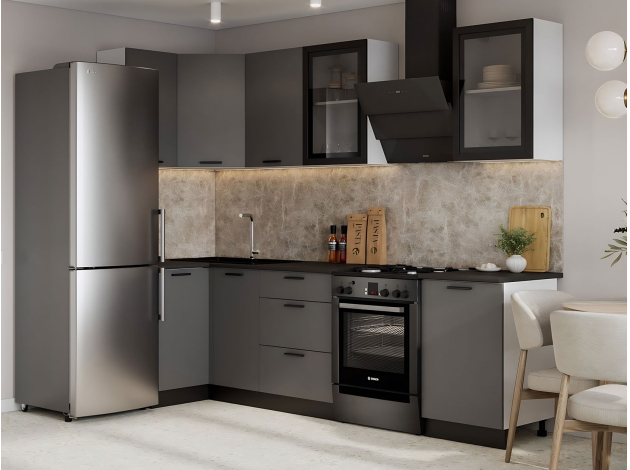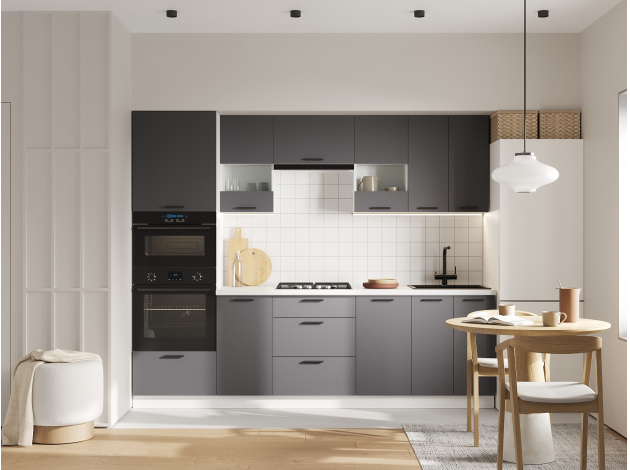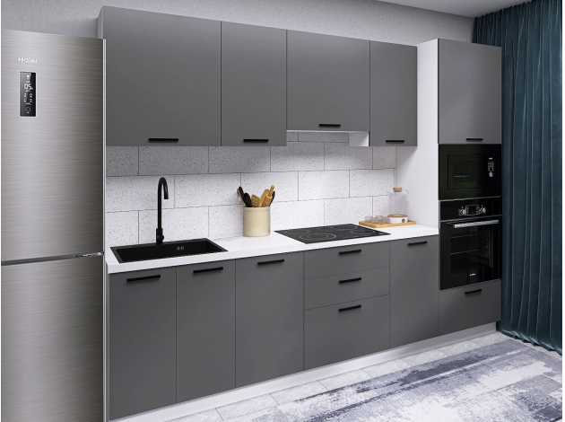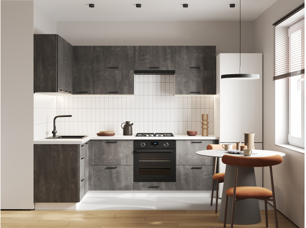 Все корпуса белого цвета. Фасады, я так выбирал, серого цвета(серый бетон). Фасады приятной фактуры, слегка шероховатые. Кромочная плёнка тоже в тон(серый бетон), она более гладкая. Всё изготовлено качественно и точно. Никаких сколов или повреждений я при сборке не обнаружил.