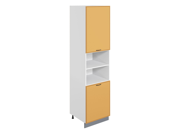 • Пенал под духовку Монако оснащен открытыми нишами, где можно разместить небольшую бытовую технику или кухонную утварь. За дверцами удобно хранить посуду и текстиль. Стильная фрезеровка на фасадах придает модулю элегантный вид.