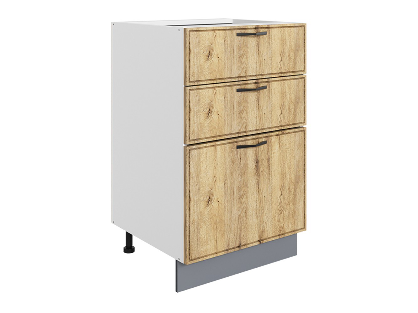 • Стол 3 ящика Монако Старт станет практичным дополнением гарнитура. Комбинированное наполнение идеально подойдет для поварских приборов, крупногабаритной посуды и небольшой техники. Плавный бесшумный ход ящиков — еще одно преимущество модуля. Благодаря регулируемым ножкам шкаф остается устойчивым даже на полу с перепадами высоты.