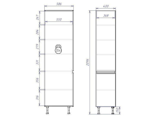 - Максимальная нагрузка на полку: 20 кг.