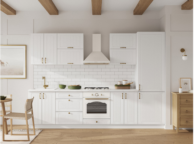Отличная кухня! Рекомендую к покупке. Собирается легко, все отверстия уже размечены. Покрытие фасадов плотное, качественное. кромки обработаны, всё без сколов. минус один - это ручки-скобы, у них болт длиннее чем нужно, нам заменить их было нечем - пришлось пилить их мультитулом.