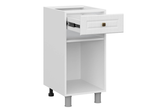 Стол Прованс послужит функциональным дополнением одноименного кухонного гарнитура. Внутреннее наполнение включает отделение с полкой и выдвижной ящик, который плавно и бесшумно выдвигается на всю глубину, обеспечивая удобный обзор содержимого. Петли с доводчиками позволят избежать хлопков и резкого закрывания. Фасады украшены декоративной фрезеровкой, что подчеркнет индивидуальность интерьера.
