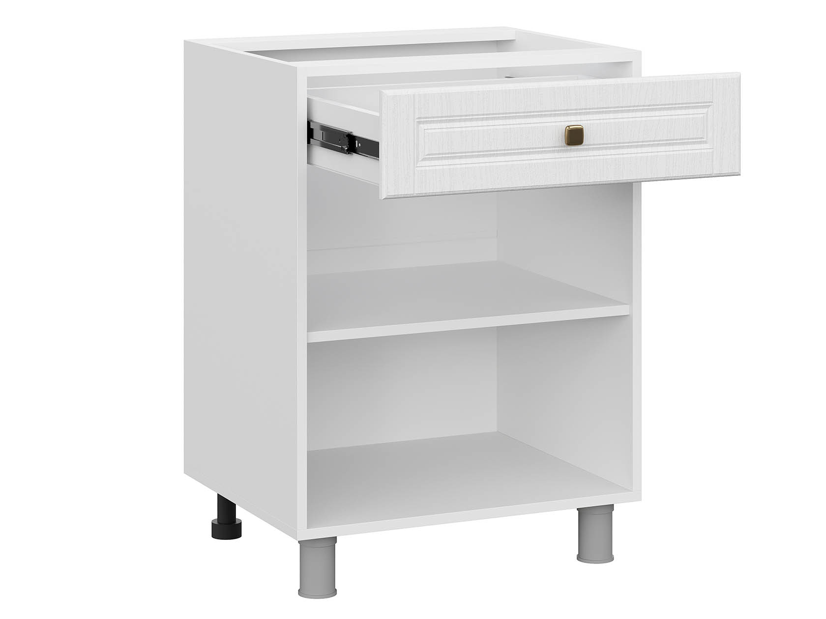 • Стол Прованс послужит функциональным дополнением одноименного кухонного гарнитура. Внутреннее наполнение включает отделение с полкой и выдвижной ящик, который плавно и бесшумно выдвигается на всю глубину, обеспечивая удобный обзор содержимого. Петли с доводчиками позволят избежать хлопков и резкого закрывания. Фасады украшены декоративной фрезеровкой, что подчеркнет индивидуальность интерьера.