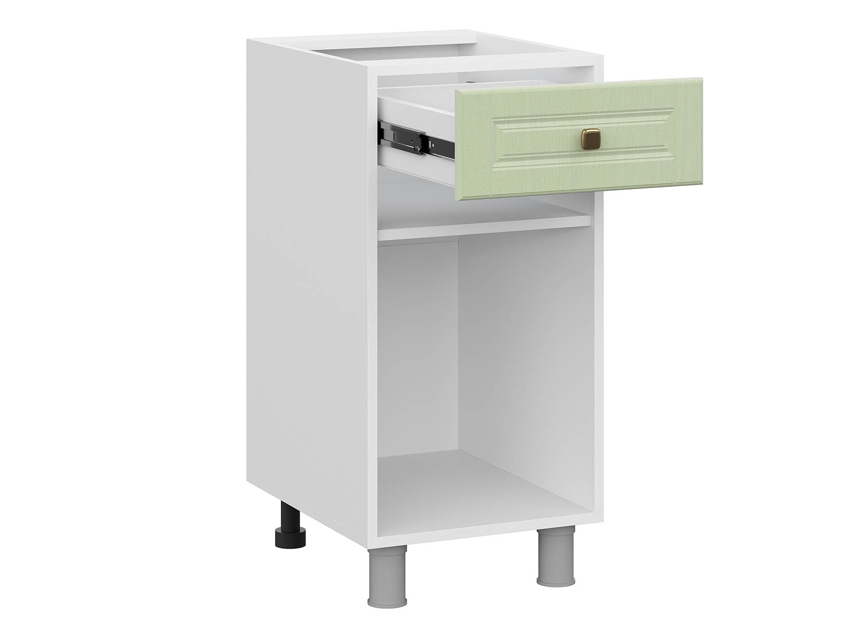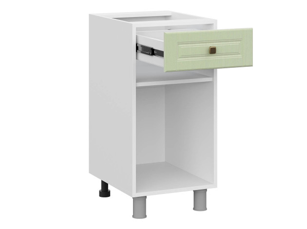 Стол Прованс послужит функциональным дополнением одноименного кухонного гарнитура. Внутреннее наполнение включает отделение с полкой и выдвижной ящик, который плавно и бесшумно выдвигается на всю глубину, обеспечивая удобный обзор содержимого. Петли с доводчиками позволят избежать хлопков и резкого закрывания. Фасады украшены декоративной фрезеровкой, что подчеркнет индивидуальность интерьера.