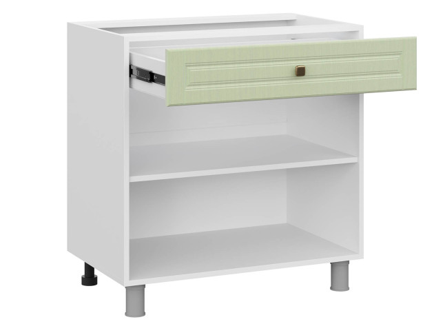 Стол Прованс послужит функциональным дополнением одноименного кухонного гарнитура. Внутреннее наполнение включает отделение с полкой и выдвижной ящик, который плавно и бесшумно выдвигается на всю глубину, обеспечивая удобный обзор содержимого. Петли с доводчиками позволят избежать хлопков и резкого закрывания. Фасады украшены декоративной фрезеровкой, что подчеркнет индивидуальность интерьера.
