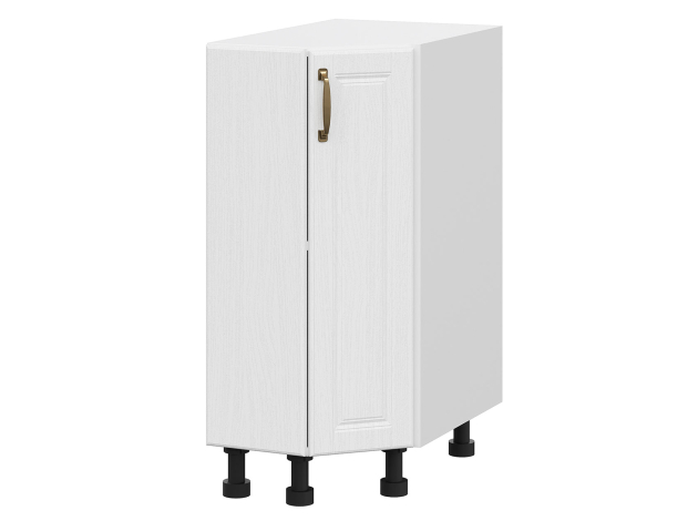 Торцевой стол Прованс — завершающий элемент нижнего ряда кухонного гарнитура. Модуль оснащен компактной распашной дверцей, за которой удобно хранить небольшую утварь. Фасад устойчив к влаге и появлению царапин, поэтому долго сохраняет эстетичный вид.