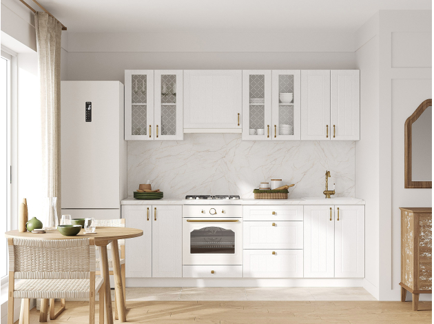 Шкаф Прованс расширит систему хранения, не загромождая полезное пространство. Вставки из матированного стекла, украшенные орнаментом, подчеркнут индивидуальность интерьера. Петли с доводчиками обеспечат плавное и бесшумное закрывание створок.