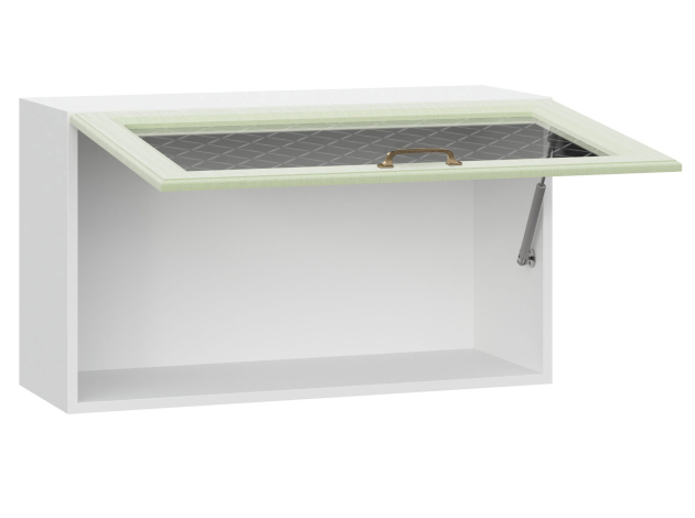 Шкаф Прованс разнообразит верхний ряд кухонного гарнитура. Фасад со стеклянной вставкой придает модулю визуальную легкость, что особенно важно для небольших помещений. Откидная дверца оснащена подъемным механизмом, который обеспечивает ее плавный ход и надежно удерживает в открытом положении.