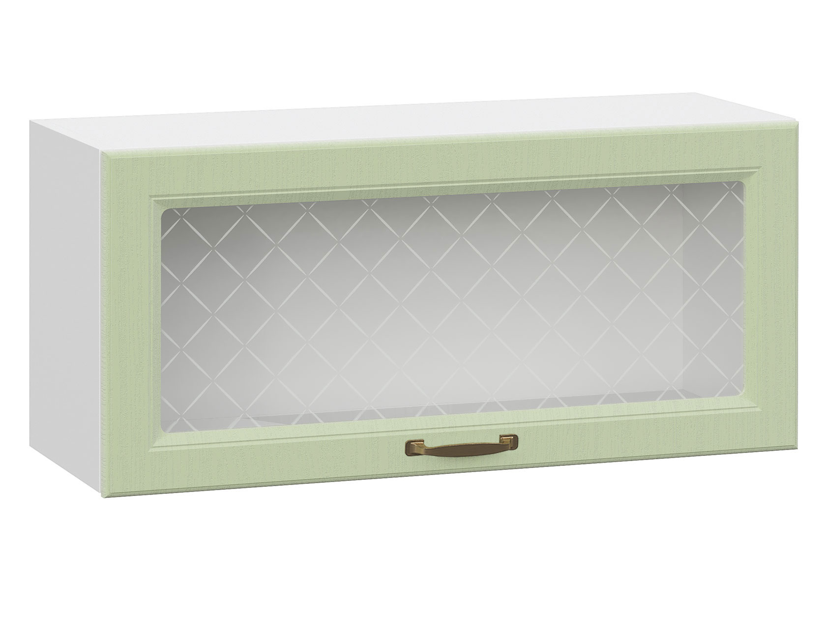 Шкаф Прованс Белый / Фисташковый структурный со стеклом 80 см