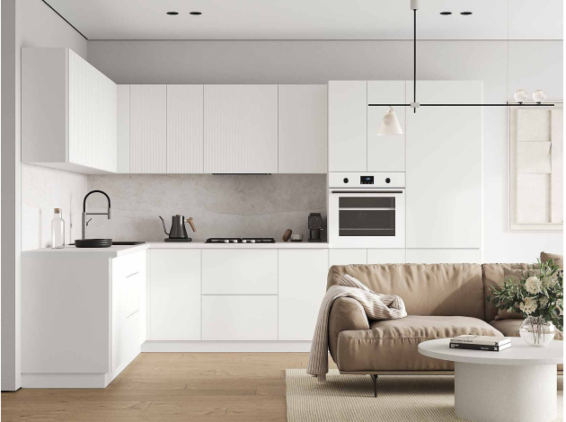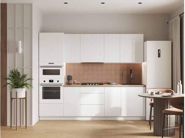 • Навесной шкаф Стайл расширит систему хранения без затрат полезного пространства кухни. За распашным фасадом скрыты высокие полки для посуды и мелкой бытовой техники. Фасад из экологичного материала гарантирует долговечность и надежность. Декоративная вертикальная фрезеровка придает модулю изящный вид.