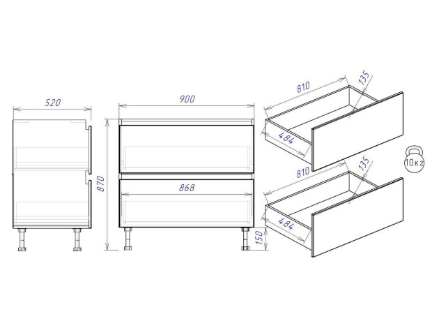 Стол с ящиками Женева Дуб Палермо / Серый камень 90 см
