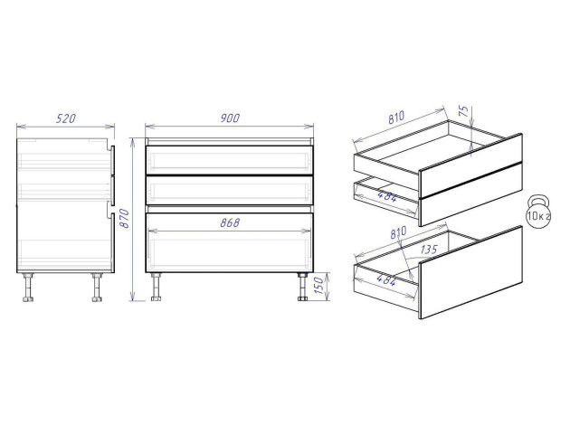 87 × 90 × 52 см