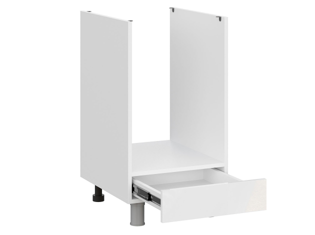 Стол под духовку Стрэйт оснащен небольшим выдвижным ящиком, где удобно хранить запасные противни и формы для запекания. Благодаря шариковым направляющим ящик двигается плавно и бесшумно. Фасад изготовлен из влаго-, термостойкого и устойчивого к повреждениям материала.