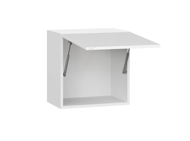 Шкаф Стрэйт выполнен в глянцевом покрытии, которое отражает свет и придает гарнитуру визуальную легкость. Подъемный механизм позволяет зафиксировать дверцу в открытом положении и обеспечивает плавный ход. Влаго- и термостойкое покрытие защищает поверхность от царапин и других повреждений.