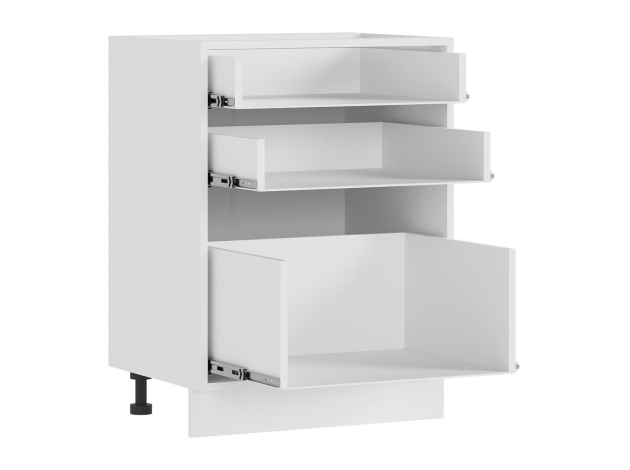Стол Тая 3 ящика обеспечит дополнительное пространство для хранения на кухне. Внутри можно разместить столовые принадлежности, контейнеры, емкости для приправ и другие предметы, которые необходимо держать под рукой. Плавный механизм позволяет бесшумно выдвигать ящики на всю глубину.