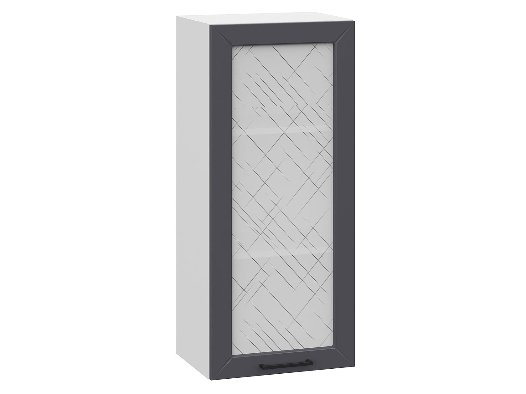 Шкаф навесной Вектор расширит возможности для хранения и украсит верхний ярус кухонного гарнитура. Узор на стекле и рамка с фрезеровкой придают модулю особую привлекательность. Внутри достаточно места для размещения любой кухонной утвари.