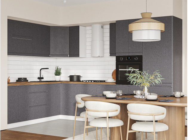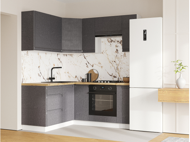 Стол под мойку угловой Вельвет позволит эффективно использовать пространство кухни. Просторная ниша внутри отлично подходит для размещения контейнера с отходами, чистящих средств и аксессуаров для уборки. На фасаде не видны отпечатки пальцев, что облегчает уход за его поверхностью.