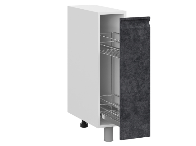 Бутылочница Вельвет организует компактное хранение емкостей, освободив место на кухонной столешнице. Удобная конструкция с выдвижной корзиной открывает быстрый доступ к содержимому. Опоры регулируются по высоте, позволяя компенсировать небольшие неровности пола.
