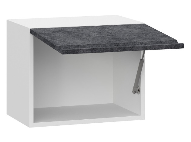 Навесной шкаф Вельвет оснащен подъемным механизмом, чтобы надежно фиксировать створку в открытом положении. Фасад с оригинальной текстурой дополнен интегрированной ручкой, которая подчеркивает современный стиль модуля.