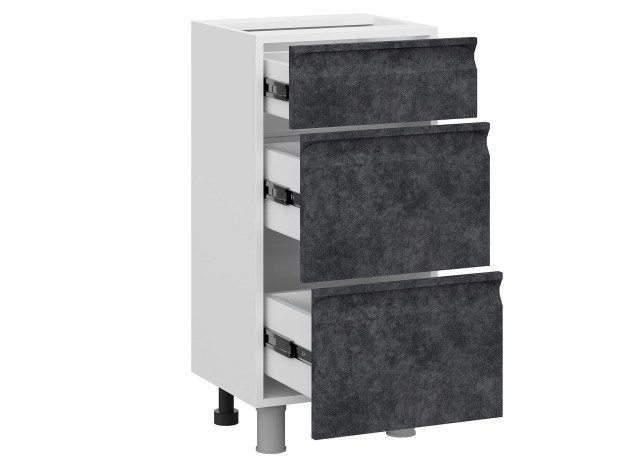 Стол узкий 400 Вельвет — компактный элемент кухонного гарнитура с практичным наполнением. Выдвижные ящики организуют удобную систему хранения. Внутри найдется место для столовых приборов, аксессуаров для приготовления пищи и другой утвари.