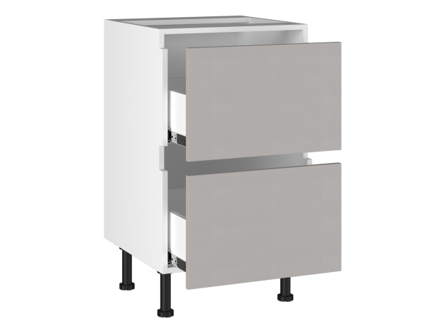 Стол Виста Практик предназначен для хранения столовых приборов и прочих кухонных принадлежностей. Благодаря направляющим с плавным ходом пользоваться ящиками очень комфортно. Матовые фасады скрывают частички пыли и отпечатки пальцев, что упрощает уход за поверхностью. Регулируемые ножки обеспечивают устойчивость модуля даже на полу с небольшими неровностями.