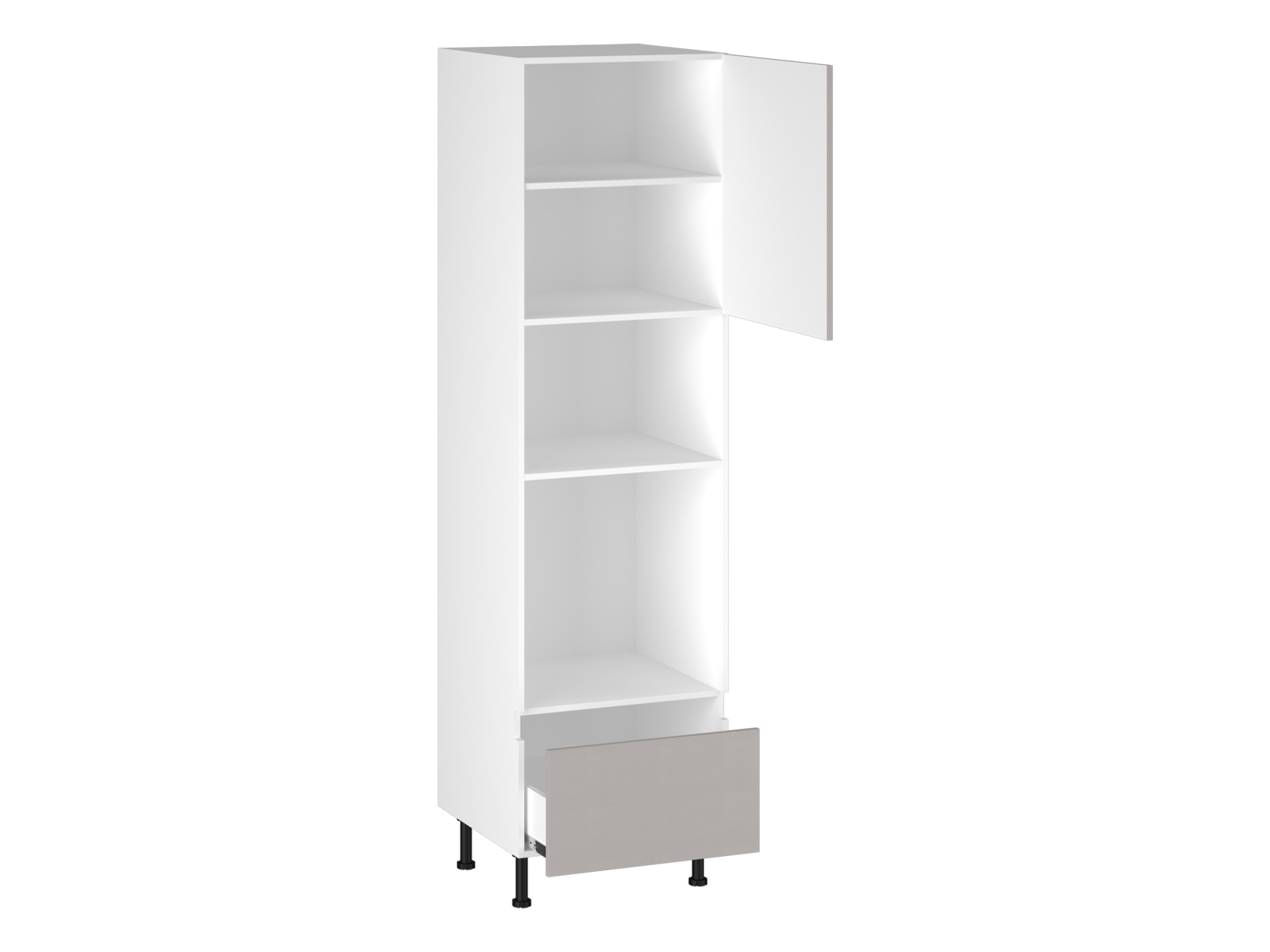 • Пенал под духовку и СВЧ Виста предназначен для эстетичного размещения встроенной техники. В нижней части предусмотрен небольшой выдвижной ящик для хранения противней, сковород и другой утвари. Регулируемые опоры придают конструкции устойчивость даже на неровном полу.