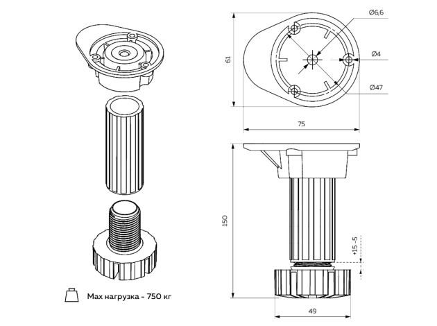 - Максимальная нагрузка: 750 кг.