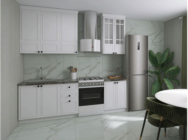 Карниз Бьянка придаст кухонному гарнитуру более эстетичный и завершенный вид. Благодаря такому дополнению можно скрыть промежуток между стеной и навесными элементами.