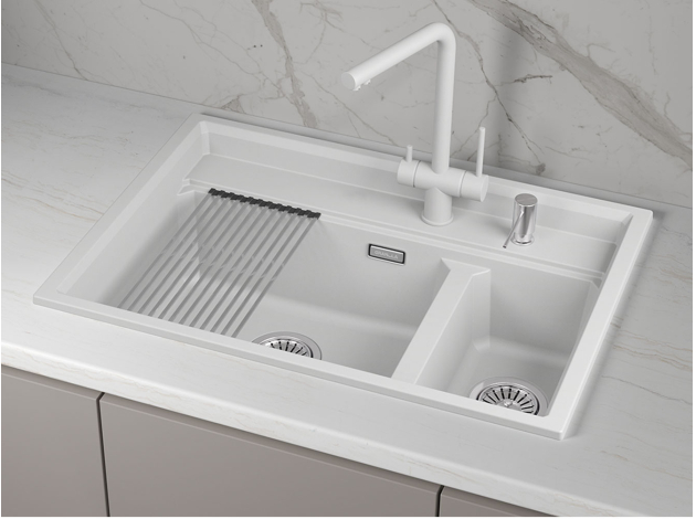 Врезная мойка Гранула 7302 с двумя чашами — идеальное решение для эффективной работы на кухне. Широкая чаша предназначена для крупной посуды, а узкая — для фруктов, овощей и различных мелочей. Кварцевый материал устойчив к царапинам, абразивным средствам, влаге и высоким температурам.
